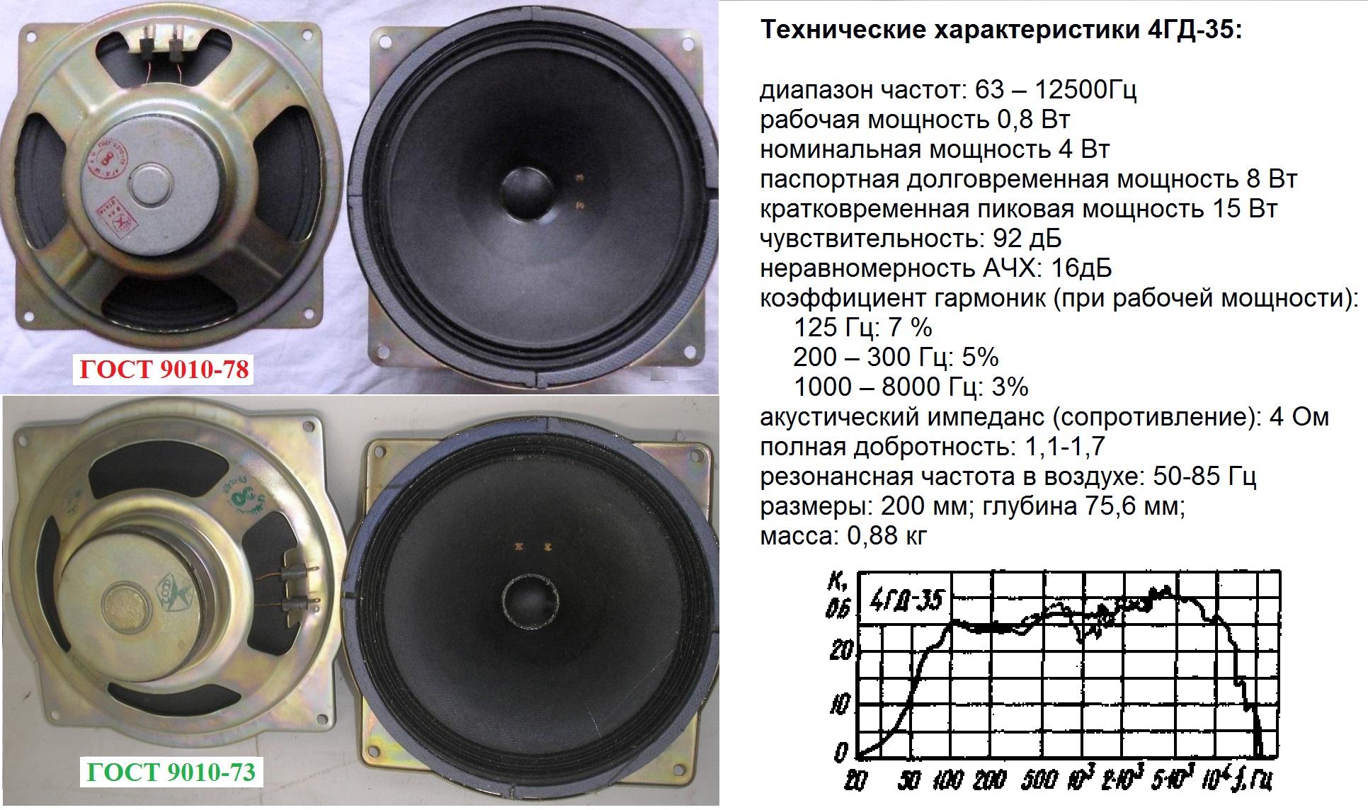 По своим характеристикам устройство с обозначением 4ГД-35 представляет собой широкополосную динамическую головку громкоговорителя. Это устаревшее название восьмидюймового четырехватного динамика советских времен. Применяется в акустических системах различного назначения.