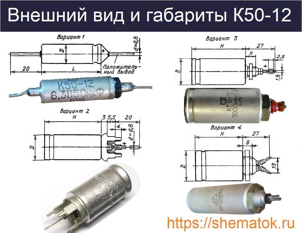 Первые версии таких конденсаторов производились с 1976 г. на Воронежском заводе радиодеталей. В дальнейшем их начали делать и другие предприятия советской промышленности. Всего встречается 4 варианта исполнения. Несмотря на разные размеры, все виды устройства содержат одинаковое количество технического серебра. Корпус выполнен из алюминия. Габариты и внешний вид представлены на рисунке.