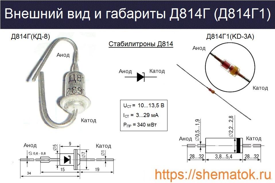 В статье рассмотрены основные характеристики стабилитрона Д814Г. Этот кремниевый, сплавно-дифузный полупроводниковый прибор средний по мощности. Напряжение стабилизации находится в диапазоне 10-13.5 В, при токе 3-29 мА.